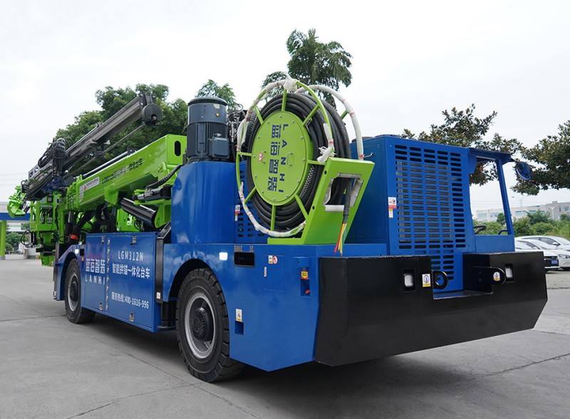 ◆ Funciones integradas: La excavadora tiene funciones integradas para perforar y anclar agujeros, erigir marcos, cargar explosivos, instalar varillas de anclaje, rellenar varillas de anclaje (opcional) e instalar mallas de alambre.